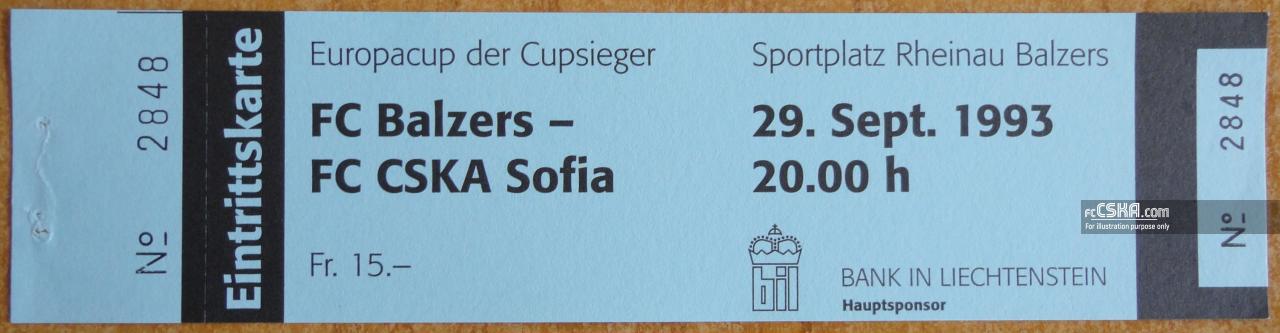 ЦСКА​ выиграл у Бальцерс со счётом 1:3 в матче Кубок обладателей кубков 1993/94 сыгранный 29 Сентябрь 1993 г. в 21:00 ч. за армейцев отличились Ivaylo Andonov (30′), Лачезар Танев (54′) и Sasha Chirich (90′).