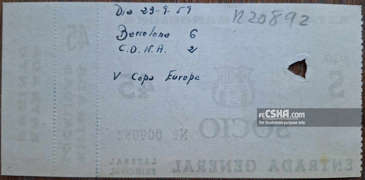 ЦДНА проиграла Барселона со счётом 6:2 в матче Кубок европейских чемпионов 1959/60 сыгранный 23 Сентябрь 1959 г. в 22:30 ч. на стадионе „Камп Ноу“ в Барселона. за армейцев отличились Димитр Миланов (24′) и Богомил Мартинов (57′).