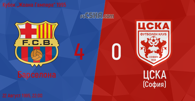 ЦСКА проиграла Барселона со счётом 4:0 в матче Кубок „Жоана Гампера“ 1995 сыгранный 22 Август 1995 г. в 22:00 ч. на стадионе „Камп Ноу“ в Барселона.