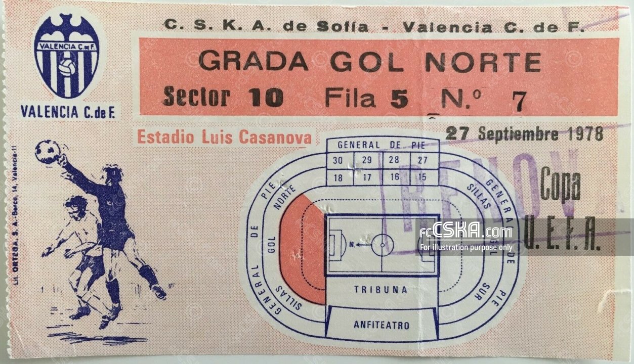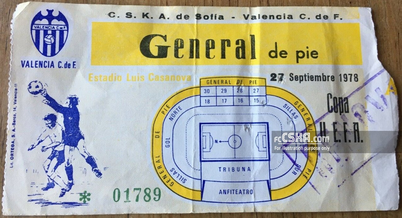 ЦСКА «Септемврийско знаме» проиграла Валенсия со счётом 4:1 в матче Кубок УЕФА 1978/79 сыгранный 27 Сентябрь 1978 г. в 22:00 ч. за армейцев отличился Nikola Hristov (17′).