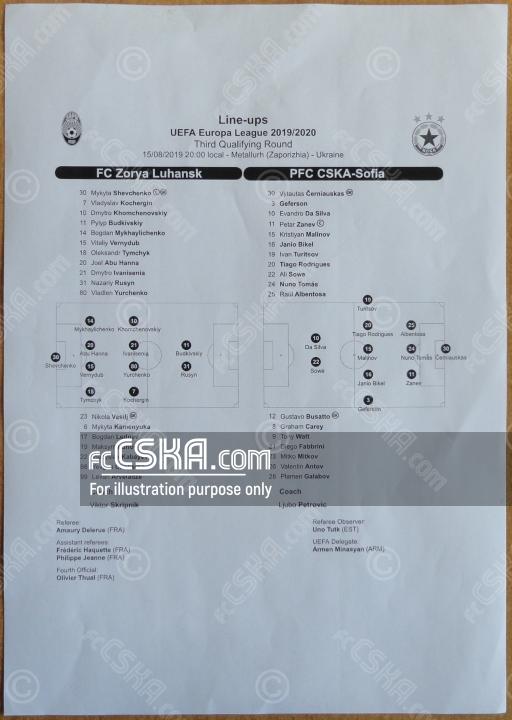 ЦСКА проиграла Заря (Луганск) со счётом 1:0 в матче Лига Европы 2019/20 сыгранный 15 Август 2019 г. в 20:00 ч.