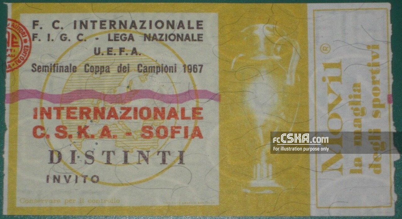 ЦСКА «Червено знаме» сыграла вничью с фк Интер (Милан) со счётом 1:1 в матче Кубок европейских чемпионов 1966/67 сыгранный 19 Апрель 1967 г. в 22:15 ч. за армейцев отличился Никола Цанев (66′).