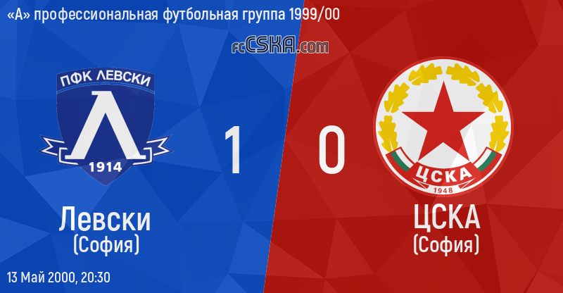 ЦСКА проиграла Левски (София) со счётом 1:0 в матче «А» профессиональная футбольная группа 1999/00 сыгранный 13 Май 2000 г. в 20:30 ч. на стадионе „Георги Аспарухов“ в София.