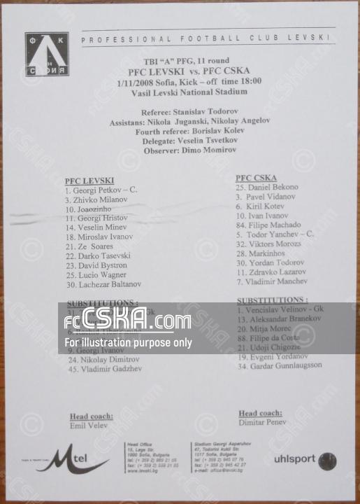 ЦСКА сыграла вничью с фк Левски (София) со счётом 1:1 в матче «А» футбольная группа 2008/09 сыгранный 1 Ноябрь 2008 г. в 18:00 ч. на стадионе „Васил Левски“ в София. за армейцев отличился Zdravko Lazarov (59′ from penalty).
