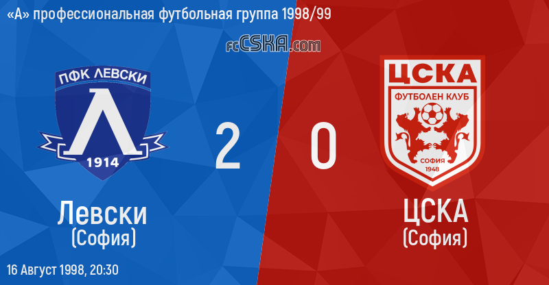 ЦСКА проиграла Левски (София) со счётом 2:0 в матче «А» профессиональная футбольная группа 1998/99 сыгранный 16 Август 1998 г. в 20:30 ч. на стадионе „Васил Левски“ в София.