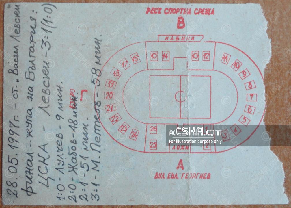 ЦСКА выиграл у Левски 1914 (София) со счётом 1:3 в матче Кубок Болгарии 1996/97 сыгранный 28 Май 1997 г. на стадионе „Васил Левски“ в София. за армейцев отличились Стефан Лулчев (9′), Петр Жабов (48′) и Milen Petkov (58′).