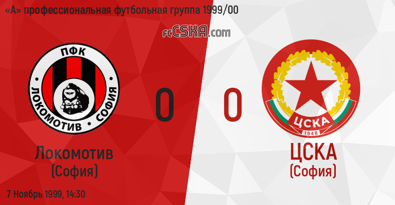 ЦСКА​ сыграла вничью с фк Локомотив (София) со счётом 0:0 в матче «А» профессиональная футбольная группа 1999/00 сыгранный 7 Ноябрь 1999 г. в 14:30 ч. на стадионе „Локомотив“ в София.