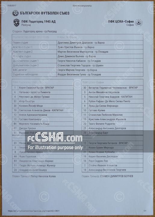 ЦСКА выиграл у Лудогорец 1945 (Разград) со счётом 1:2 в матче Первая профессиональная лига 2017/18 сыгранный 5 Ноябрь 2017 г. в 18:00 ч. за армейцев отличились Fernando Karanga (58′) и Kevin Merkado (71′).