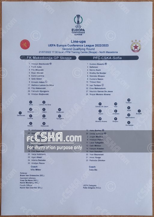 ЦСКА сыграла вничью с фк Македония ДП (Скопье) со счётом 0:0 в матче Лига конференций 2022/23 сыгранный 21 Июль 2022 г. в 18:30 ч. на стадионе „трен. центр „Петар Милошевский““ в Скопье.