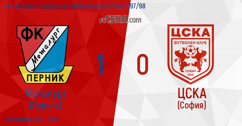 ЦСКА проиграла Металург (Перник) со счётом 1:0 в матче «А» профессиональная футбольная группа 1997/98 сыгранный 20 Сентябрь 1997 г. в 17:00 ч.
