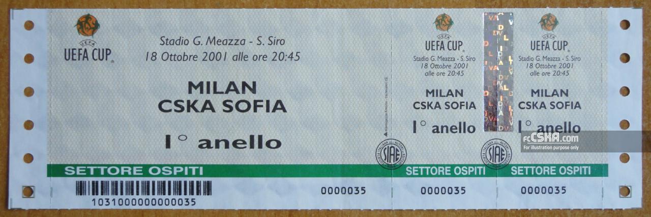 ЦСКА проиграла Милан (Милано) со счётом 2:0 в матче Кубок УЕФА 2001/02 сыгранный 18 Октябрь 2001 г. в 21:45 ч.