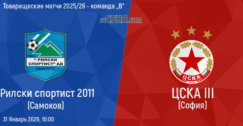 ЦСКА III будет играть с Рилски спортист в матче Товарищеские матчи 2025/26 - команда „В“ 31 Январь 2026 г. в 10:00 ч.