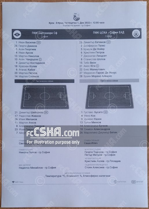 ЦСКА выиграл у Септември (София) со счётом 1:2 в матче Кубок Болгарии 2022/23 сыгранный 1 Декабрь 2022 г. в 12:00 ч. на стадионе „Болгарска армия“ в София. за армейцев отличились Маурисио Гарсес Жезус (55′) и Дюкенс Назон (68′ from penalty).
