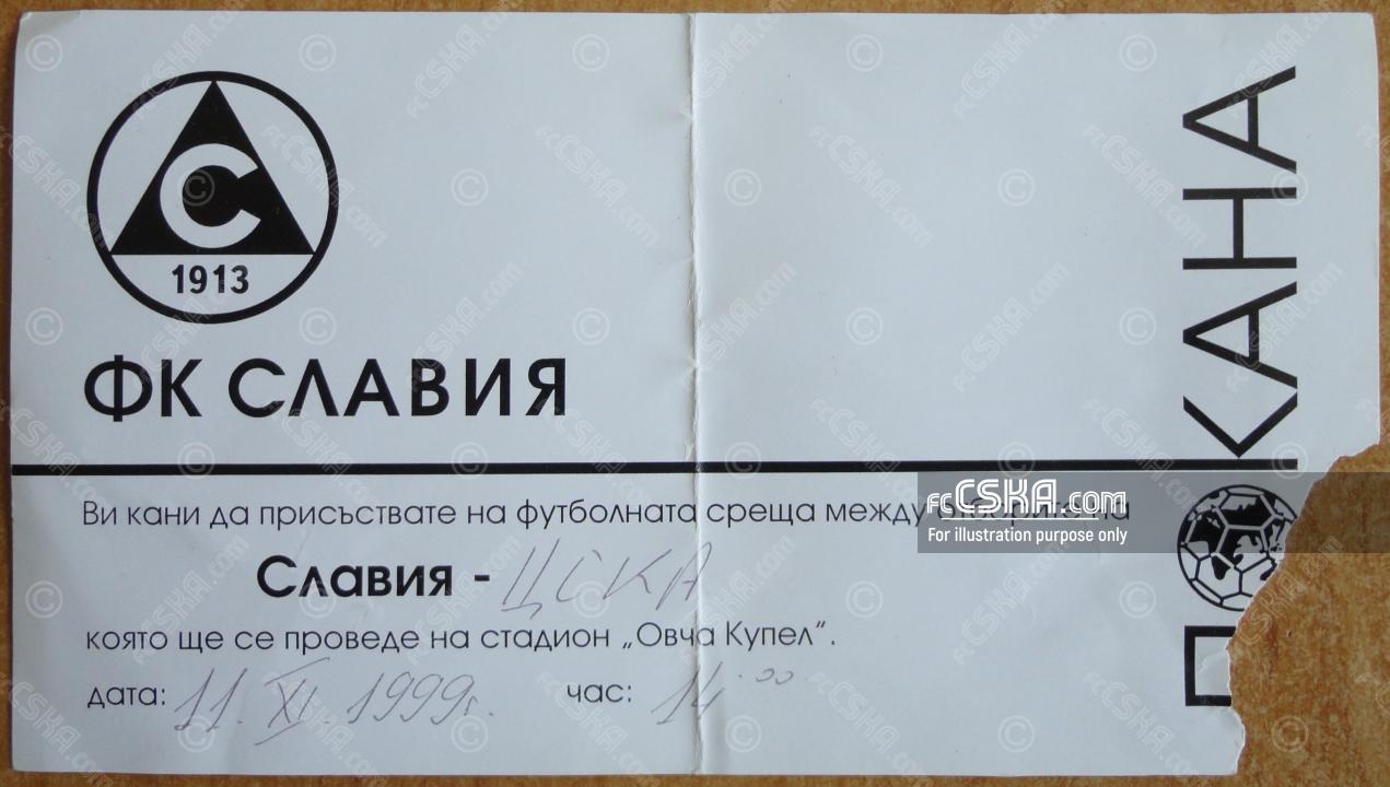 ЦСКА​ выиграл у Славия 1913 (София) со счётом 1:2 в матче Кубок Болгарии 1999/00 сыгранный 11 Ноябрь 1999 г. на стадионе „Славия“ в София. за армейцев отличились Великов Великов (49′) и Димитр Бербатов (88′).