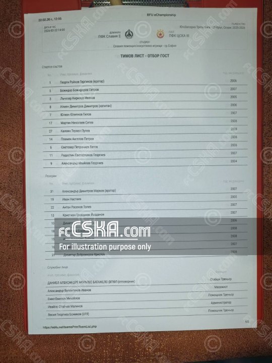 ЦСКА III выиграл у Славия 1913 II (София) со счётом 1:2 в матче Юго-Западная Третья лига 2025/26 сыгранный 22 Февраль 2026 г. в 14:01 ч. на стадионе „Александър Шаламанов“ в София.