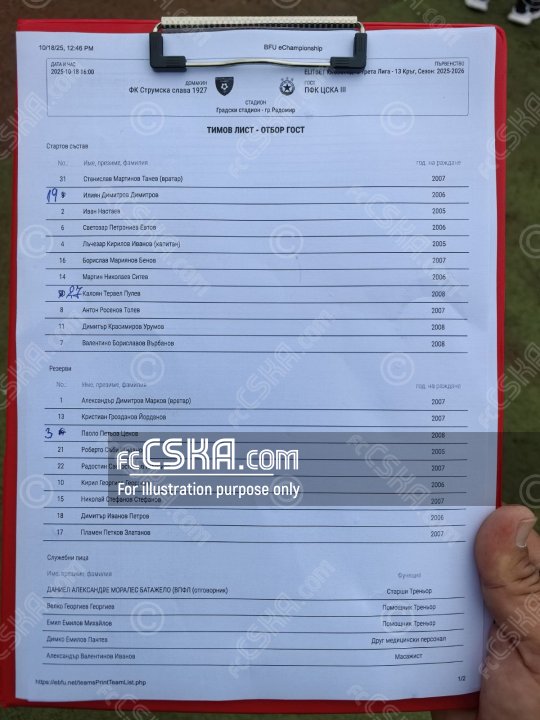 ЦСКА III проиграла Струмска слава 1927 (Радомир) со счётом 3:1 в матче Юго-Западная Третья лига 2025/26 сыгранный 18 Октябрь 2025 г. в 16:00 ч. на стадионе „Христо Радованов“ в Радомир.