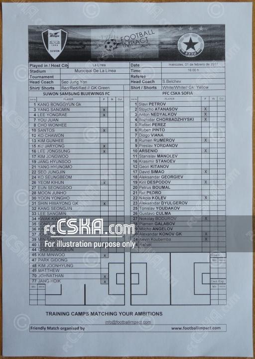 ЦСКА проиграла Сувон со счётом 4:0 в матче Товарищеские матчи 2016/17 сыгранный 1 Февраль 2017 г. в 17:45 ч.