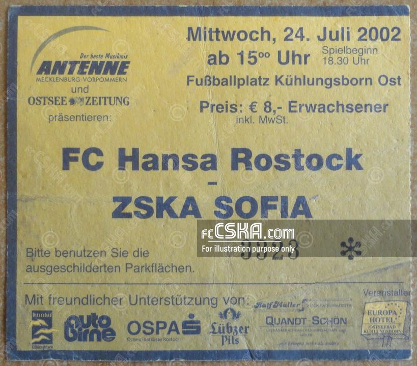 ЦСКА проиграла Ханза (Росток) со счётом 1:0 в матче Товарищеские матчи 2002/03 сыгранный 24 Июль 2002 г. в 19:30 ч.