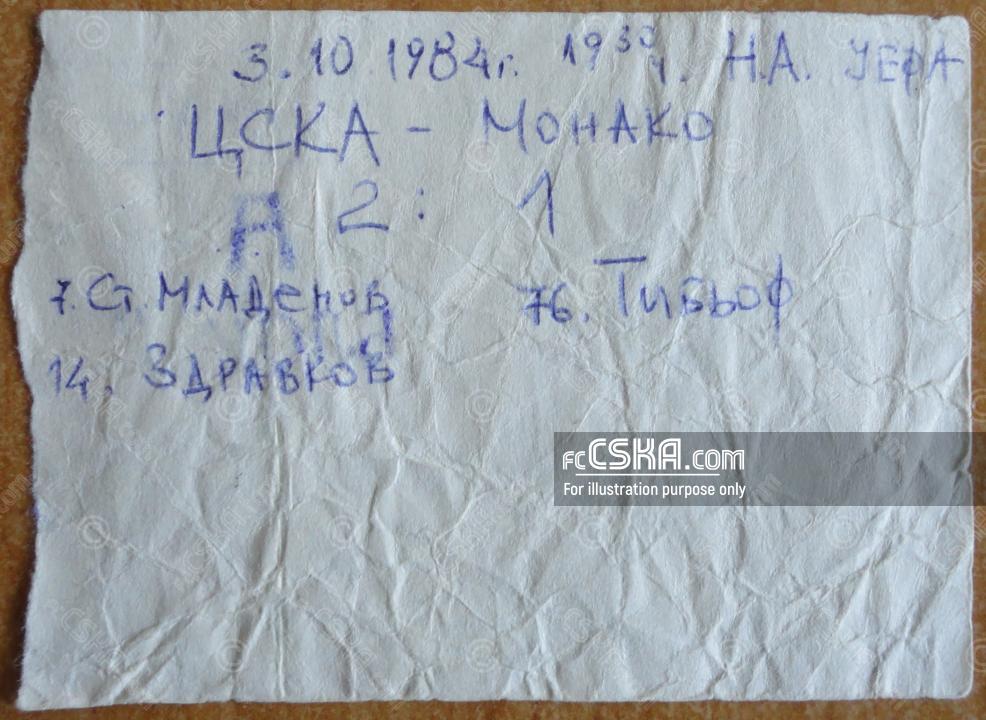 ЦСКА​ «Септемврийско знаме» выиграл у Монако со счётом 2:1 в матче Кубок УЕФА 1984/85 сыгранный 3 Октябрь 1984 г. на стадионе „Народна армия“ в София. за армейцев отличились Стойчо Младенов (7′) и Радослав Здравков (13′ from penalty).