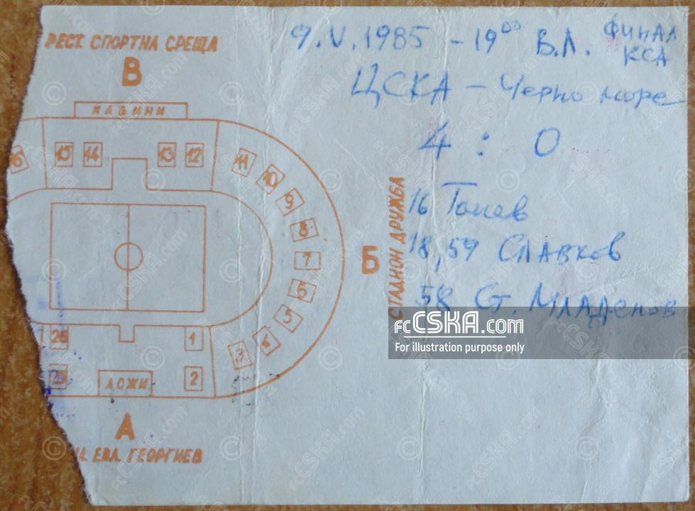 ЦСКА «Септемврийско знаме» выиграл у Черно море (Варна) со счётом 4:0 в матче Кубок Советской армии 1984/85 сыгранный 9 Май 1985 г. на стадионе „Васил Левски“ в София. за армейцев отличились Лачезар Танев (16′), Georgi Slavkov (18′ и 59′) и Стойчо Младенов (58′).