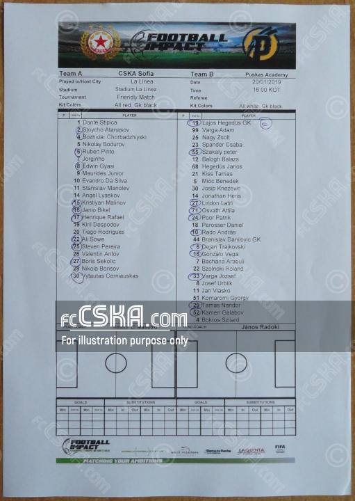ЦСКА проиграла Академия Пушкаша (Фелчут) со счётом 1:3 в матче Товарищеские матчи 2018/19 сыгранный 20 Январь 2019 г. в 17:00 ч. за армейцев отличился Тиаго Родригес (81′).