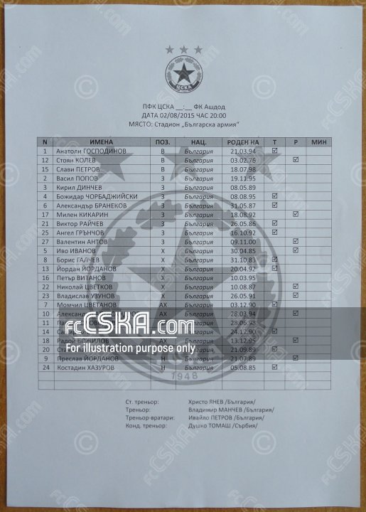 ЦСКА проиграла Ашдод со счётом 0:1 в матче Товарищеские матчи 2015/16 сыгранный 2 Август 2015 г. в 19:00 ч. на стадионе „Болгарска армия“ в София.