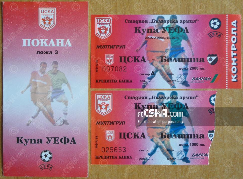 ЦСКА выиграл у Белшина (Бобруйск) со счётом 3:1 в матче Кубок УЕФА 1998/99 сыгранный 29 Июль 1998 г. на стадионе „Болгарска армия“ в София. за армейцев отличились Martin Petrov (7′), Валентин Найденов (38′) и Валентин Станчев (90′).