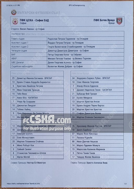 - [1] — имена игроков соперника, судьи, которых нет в нашем база данных, автоматически транскрибируются с болгарского и могут отличаться от исходного написания