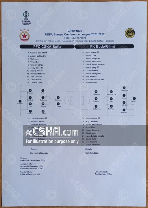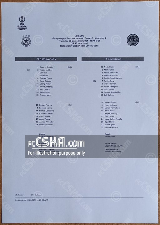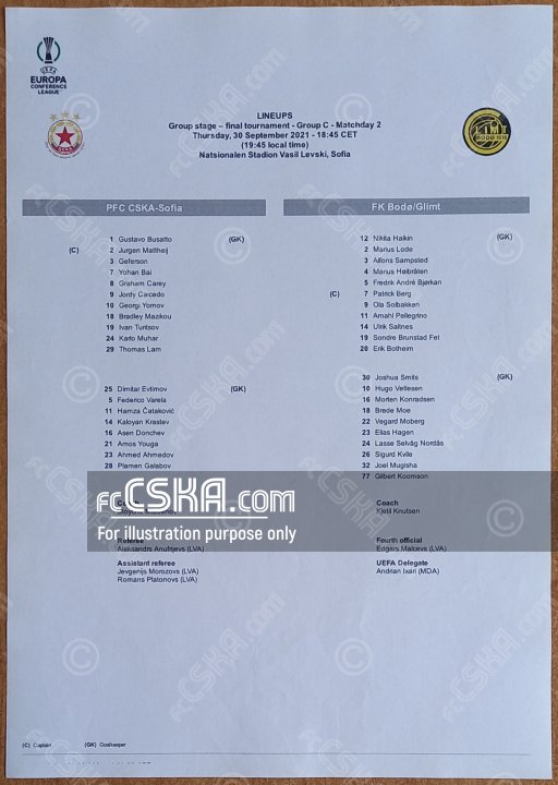 ЦСКА​ сыграла вничью с фк Будё-Глимт со счётом 0:0 в матче Лига конференций 2021/22 - группа «C» сыгранный 30 Сентябрь 2021 г. в 19:45 ч. на стадионе „Васил Левски“ в София.