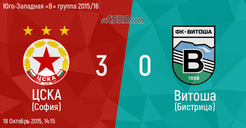 ЦСКА выиграл у Витоша (Бистрица) со счётом 3:0 в матче Юго-Западная «В» группа 2015/16 сыгранный 18 Октябрь 2015 г. в 14:15 ч. на стадионе „Болгарска армия“ в София.
