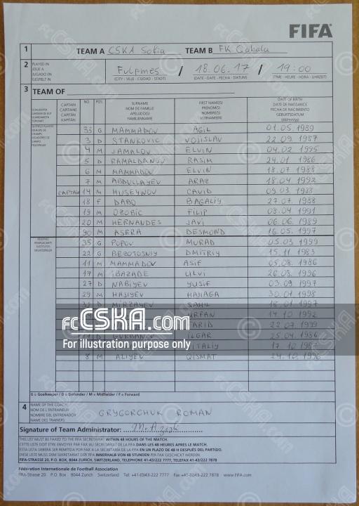 ЦСКА выиграл у Габала (Габала) со счётом 2:0 в матче Кубок «Щубай» 2017 сыгранный 18 Июнь 2017 г. в 20:00 ч. за армейцев отличились Антон Недялков (4′) и Kevin Kubemba (44′).