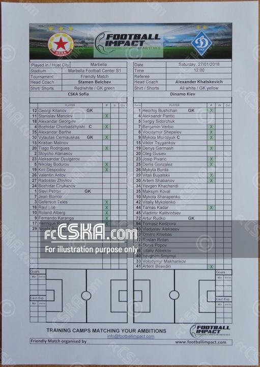 ЦСКА сыграла вничью с фк Динамо (Киев) со счётом 0:0 в матче Товарищеские матчи 2017/18 сыгранный 27 Январь 2018 г. в 13:00 ч.