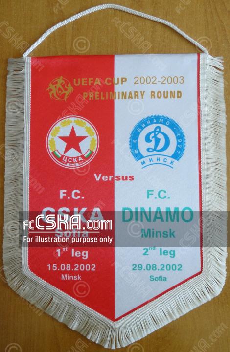 ЦСКА выиграл у Динамо (Минск) со счётом 1:0 в матче Кубок УЕФА 2002/03 сыгранный 29 Август 2002 г. в 20:30 ч. на стадионе „Болгарска армия“ в София. за армейцев отличился Артим Шакири (64′ from penalty).