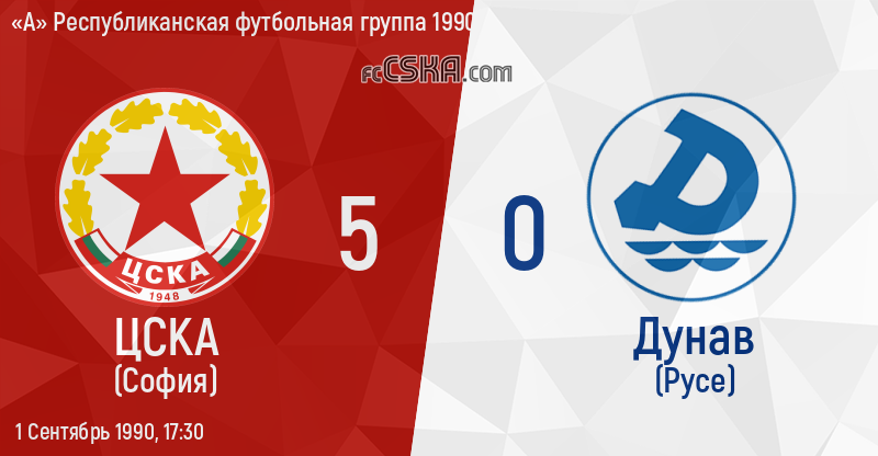 ЦСКА​ выиграл у Дунав (Русе) со счётом 5:0 в матче «А» Республиканская футбольная группа 1990/91 сыгранный 1 Сентябрь 1990 г. в 17:30 ч. на стадионе „Народна армия“ в София. за армейцев отличились Georgi K. Georgiev (16′), Trifon Ivanov (26′), Христо Марашлиев (28′ и 53′) и Doncho Donev (75′).