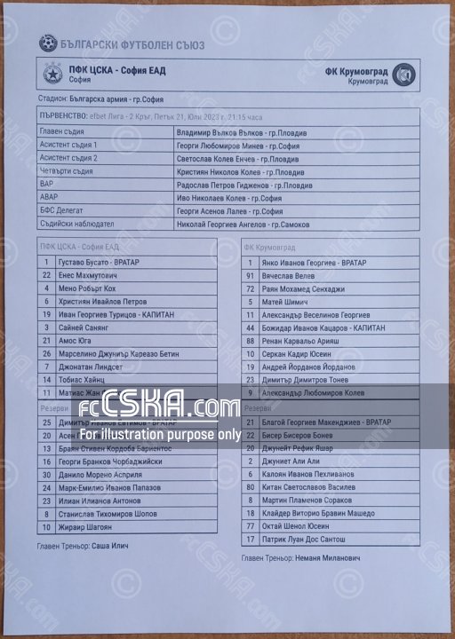 - [1] — имена игроков соперника, судьи, которых нет в нашем база данных, автоматически транскрибируются с болгарского и могут отличаться от исходного написания