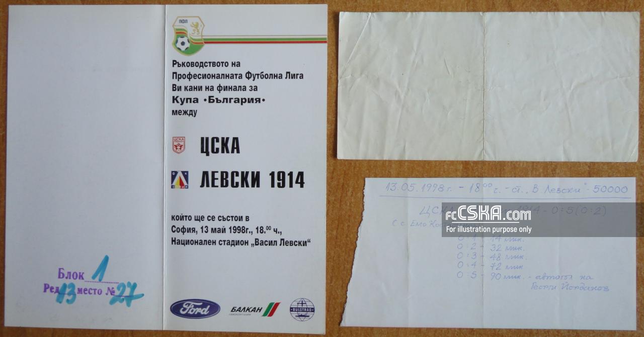 ЦСКА проиграла Левски (София) со счётом 0:5 в матче Кубок Болгарии 1997/98 сыгранный 13 Май 1998 г. на стадионе „Васил Левски“ в София.