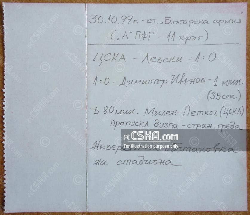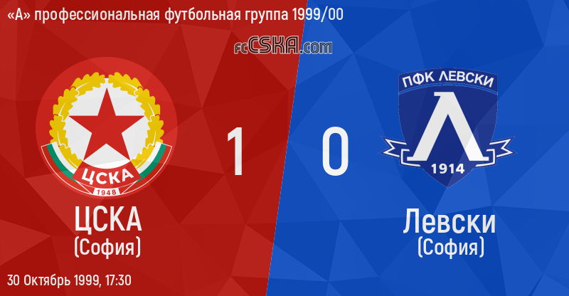 ЦСКА выиграл у Левски (София) со счётом 1:0 в матче «А» профессиональная футбольная группа 1999/00 сыгранный 30 Октябрь 1999 г. в 17:30 ч. на стадионе „Болгарска армия“ в София. за армейцев отличился Димитр Иванов (1′).