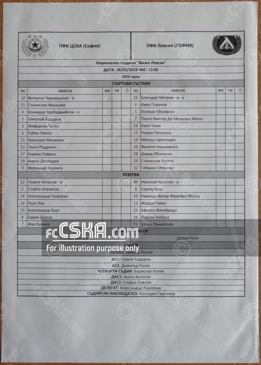 ЦСКА выиграл у Левски (София) со счётом 1:0 в матче Первая профессиональная лига 2017/18 сыгранный 18 Март 2018 г. в 13:00 ч. на стадионе „Васил Левски“ в София. за армейцев отличился Fernando Karanga (85′).