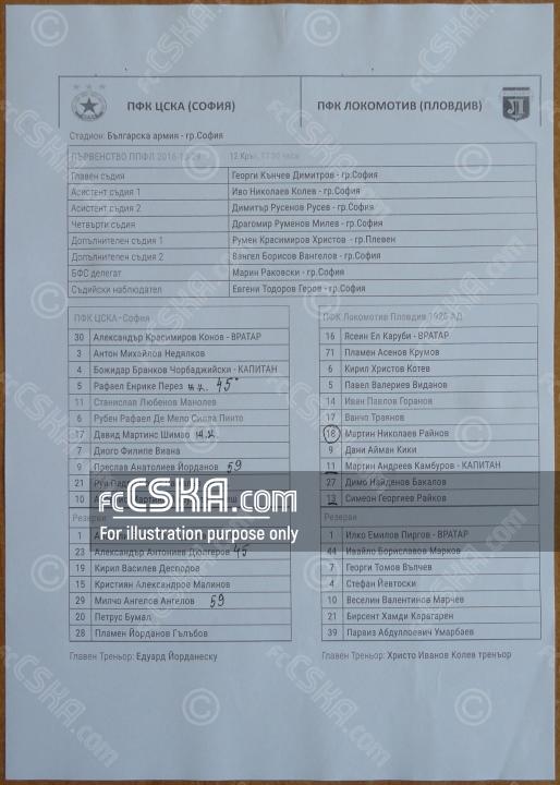 ЦСКА проиграла Локомотив 1926 (Пловдив) со счётом 0:1 в матче Первая профессиональная лига 2016/17 сыгранный 29 Октябрь 2016 г. в 17:30 ч. на стадионе „Болгарска армия“ в София.