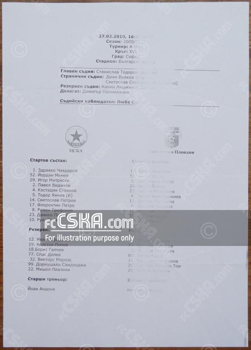 ЦСКА выиграл у Локомотив 1936 (Пловдив) со счётом 3:2 в матче „А“ футбольная группа 2009/10 сыгранный 27 Февраль 2010 г. в 16:45 ч. на стадионе „Болгарска армия“ в София. за армейцев отличились Ruy Migel (14′ и 28′) и Daniel Panku (34′).