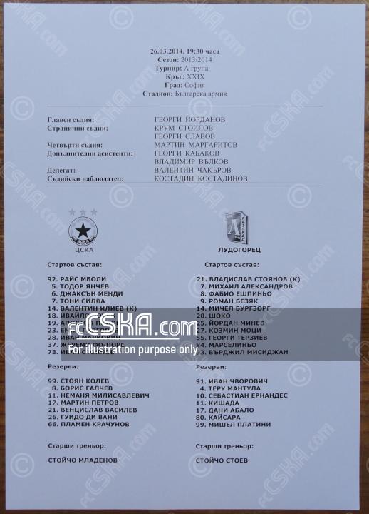 ЦСКА проиграла Лудогорец 1945 (Разград) со счётом 0:1 в матче «А» футбольная группа 2013/14 - первая 7 сыгранный 26 Март 2014 г. в 19:30 ч. на стадионе „Болгарска армия“ в София.
