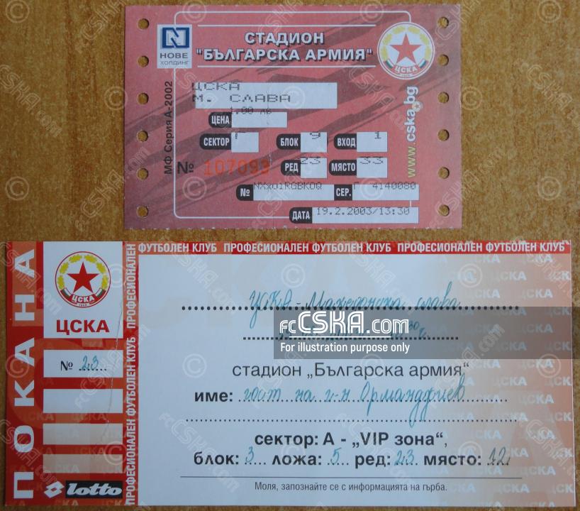 ЦСКА выиграл у Македонска слава (Симитли) со счётом 3:2 в матче Кубок Болгарии 2002/03 сыгранный 19 Февраль 2003 г. в 13:30 ч. на стадионе „Болгарска армия“ в София. за армейцев отличились Emil Gargorov (7′ и 75′ from penalty) и Velizar Dimitrov (73′).
