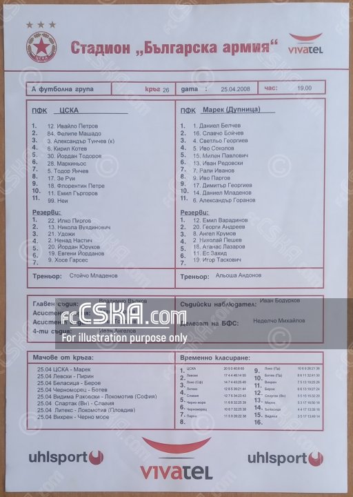 ЦСКА выиграл у Марек (Дупница) со счётом 4:0 в матче «А» футбольная группа 2007/08 сыгранный 25 Апрель 2008 г. в 19:00 ч. на стадионе „Болгарска армия“ в София. за армейцев отличились Florentin Petre (14′), Ney (29′ и 51′) и Йордан Юруков (72′).