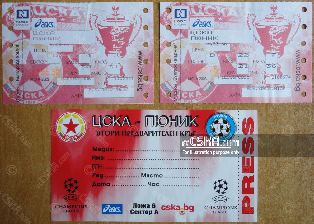 ЦСКА выиграл у Пюник (Ереван) со счётом 1:0 в матче Лига чемпионов 2003/04 сыгранный 6 Август 2003 г. в 20:30 ч. на стадионе „Болгарска армия“ в София. за армейцев отличился Леонардо Лео Лима (91′ from penalty).