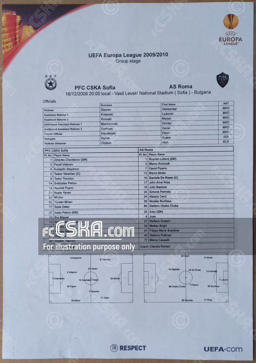 ЦСКА проиграла Рома (Рим) со счётом 0:3 в матче сыгранный 16 Декабрь 2009 г. в 20:00 ч. на стадионе „Васил Левски“ в София.