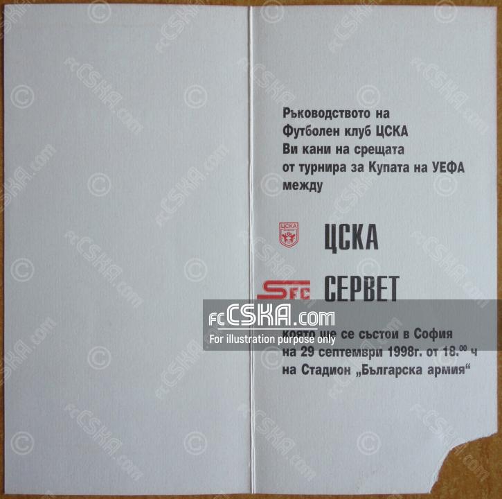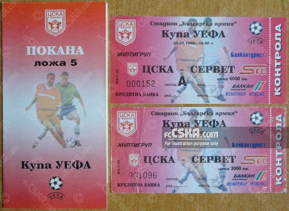 ЦСКА выиграл у Сервет (Женева) со счётом 1:0 в матче Кубок УЕФА 1998/99 сыгранный 29 Сентябрь 1998 г. на стадионе „Болгарска армия“ в София. за армейцев отличился Валентин Станчев (10′).