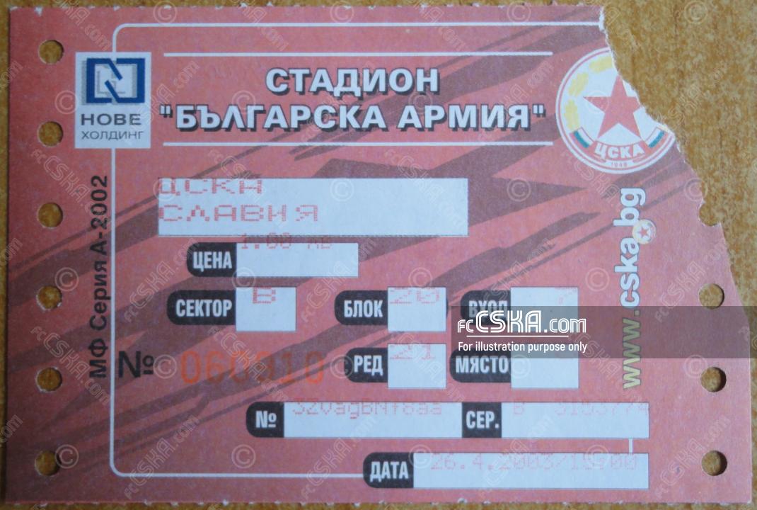 ЦСКА выиграл у Славия 1913 (София) со счётом 3:1 в матче Высшая профессиональная лига 2002/03 сыгранный 26 Апрель 2003 г. в 15:00 ч. на стадионе „Васил Левски“ в София. за армейцев отличились Жоао Брито (8′), Yordan Todorov (30′) и Makdonald Mukansi (44′).