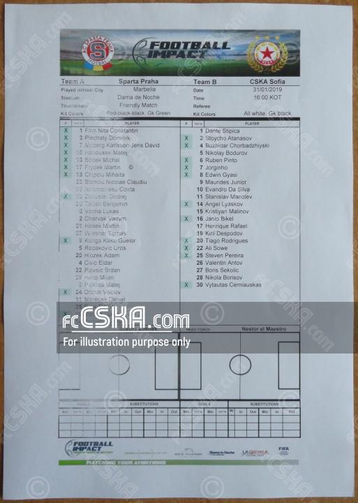ЦСКА проиграла Спарта (Прага) со счётом 2:3 в матче Товарищеские матчи 2018/19 сыгранный 31 Январь 2019 г. в 17:00 ч. за армейцев отличились Тиаго Родригес (21′ from penalty) и Zhorzhinyo (41′).