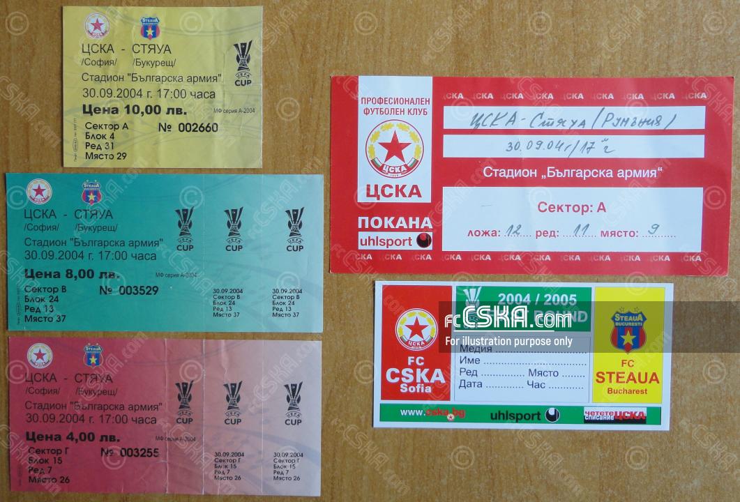 ЦСКА сыграла вничью с фк Стяуа (Бухарест) со счётом 2:2 в матче Кубок УЕФА 2004/05 сыгранный 30 Сентябрь 2004 г. в 17:00 ч. на стадионе „Болгарска армия“ в София. за армейцев отличились Стойко Сакалиев (45′) и Emil Gargorov (75′).