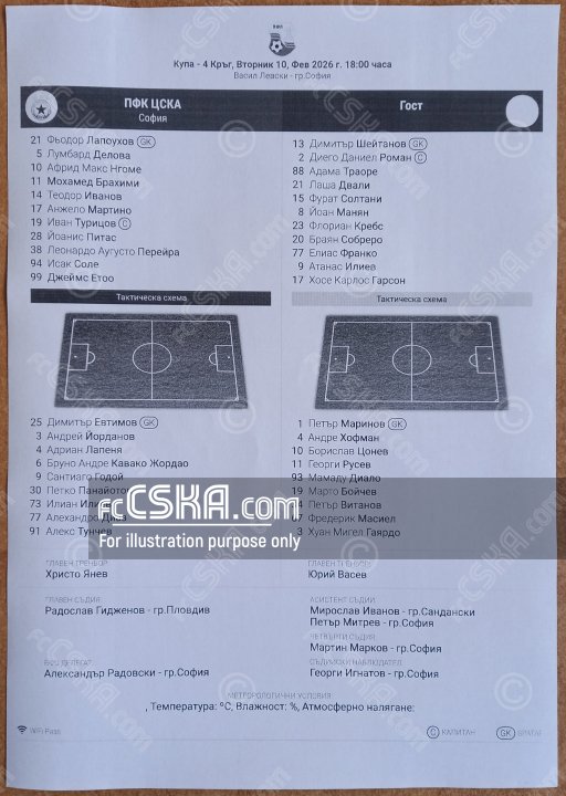 - [1] — имена игроков соперника, судьи, которых нет в нашем база данных, автоматически транскрибируются с болгарского и могут отличаться от исходного написания